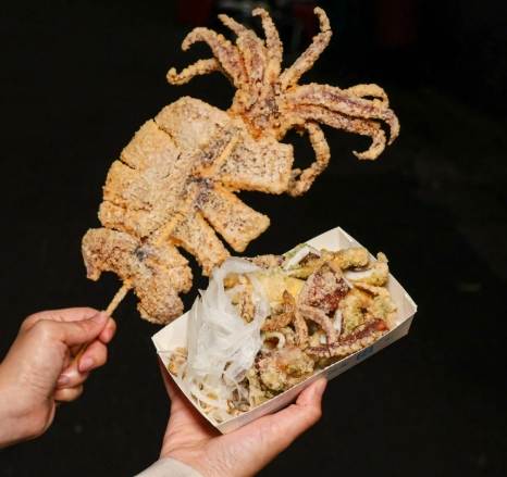 • 介紹: 喜歡吃炸物的朋友看過來!這攤的炸魷魚,絕~對~是視覺和味覺的雙重衝擊!魷魚 超級大隻,裹上薄薄的粉漿現炸,起鍋後金黃酥脆,香氣逼人。你可以選擇自己喜歡的調味粉:椒鹽、海苔、辣味、梅子... 我最愛 椒鹽加一點點辣粉。重點是那口感!外皮炸得 卡滋卡滋超級酥脆,裡面的魷魚肉身卻是 厚實Q彈有嚼勁,鮮味十足,完全不會咬不動或粉粉的。胃口小的人可能兩人分一隻就夠了,吃起來超級過癮,是 八德興仁夜市 裡邪惡系美食的代表作之一!不過熱量嘛... 嗯,逛夜市就別想這麼多了,對吧?記得趁熱吃,冷掉酥脆度會下降一點。