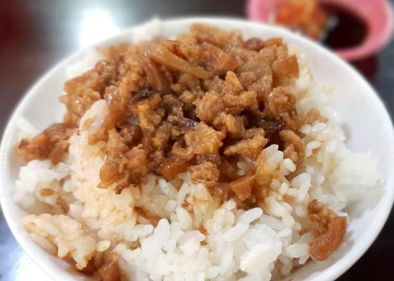 介紹:滷肉飯肥瘦適中,肉燥熬得入味,淋在白飯上香氣十足。我特別喜歡加顆滷蛋,蛋黃吸滿滷汁超下飯。缺點是米飯有時煮太軟,口感不Q。(聳肩)