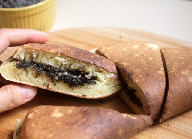 | 外焦內不熟 | 外表黑嚕嚕,裡面麵糊還生的 | 1. 火太大。 2. 只顧煎一面忘了翻。 3. 麵糊倒太厚。 |
