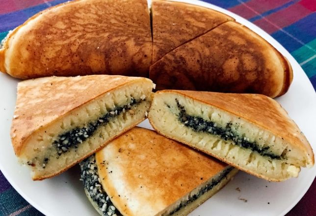 - 撒餡料時機? (表面霧化起小孔時,約倒麵糊後30-60秒)