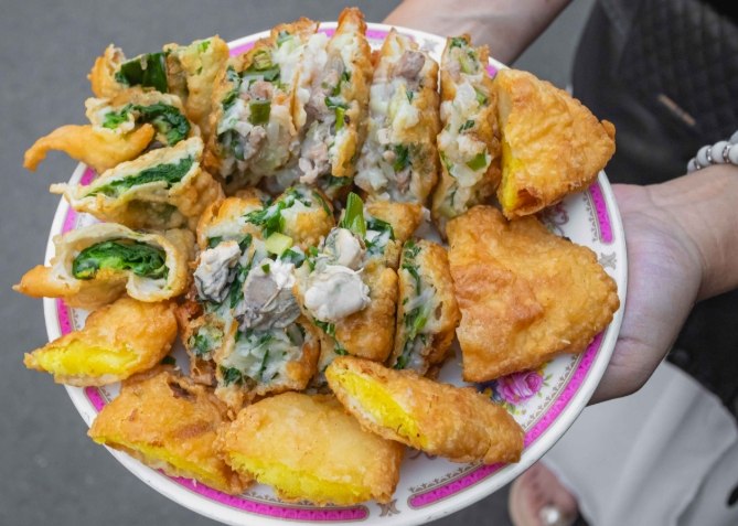 說到隱藏版小吃,在地朋友帶路才找到的「無名蚵嗲」絕對是其一!藏身在小巷弄裡的民宅前,老闆娘的蚵嗲用料超霸氣!麵糊是古早味配方,現點現包現炸。每顆蚵嗲裡都裹著飽滿肥美的東港鮮蚵(鄰居優勢!)、韭菜和高麗菜絲。剛起鍋時,外皮酥脆到不行,咬開後爆出鮮甜的蚵仔汁和蔬菜的清甜,超級好吃!鮮蚵真的給得不手軟。缺點是位置隱密,沒人帶路不好找,而且只賣下午幾個小時,賣完就收。
