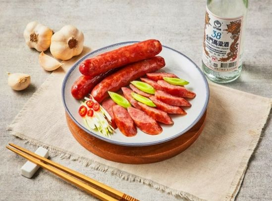 - 特色與亮點: 選用溫體豬肉(通常是黑毛豬),肥瘦比例恰到好處(約3:7或2:8),絞肉保留顆粒感。最大特色是在醃製時加入了高梁酒(金門高粱為多),經過炭火慢烤逼出油脂後,咬下去肉汁豐沛,除了豬肉的鮮甜,更帶著明顯的高粱酒香,香而不嗆,非常迷人!外皮烤得微焦脆,裡面多汁。比起一般香腸,這個酒香真的畫龍點睛,吃過很難忘記。但怕酒味的人可能不愛。