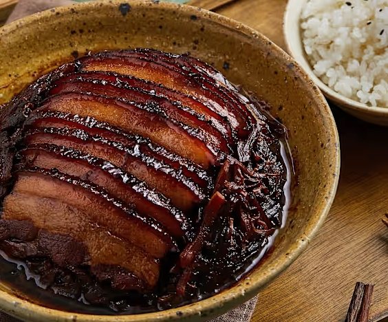 - 特色與亮點: 選用肥瘦相間的三層肉(五花肉),先炸或煎過定型上色(「走油」),再與自家醃製曝曬的「梅干菜」(用芥菜醃漬曬乾)一起長時間滷製或蒸透。梅干菜的鹹香甘醇完全滲入肉中,化解了肥肉的油膩,同時賦予豬肉深沉的風味。肉必須燉到入口即化、肥而不膩;梅干菜吸飽肉汁,鹹香下飯。這道菜非常考驗火候和時間,好吃的真的會讓人扒光整碗飯!不過怕肥肉的朋友可能要斟酌。